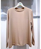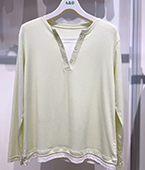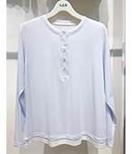 莱赛尔亚麻螺纹圆领直排扣镶色长袖衫