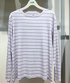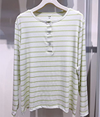 莱赛尔棉幻彩条纹圆领长袖纽扣套头衫