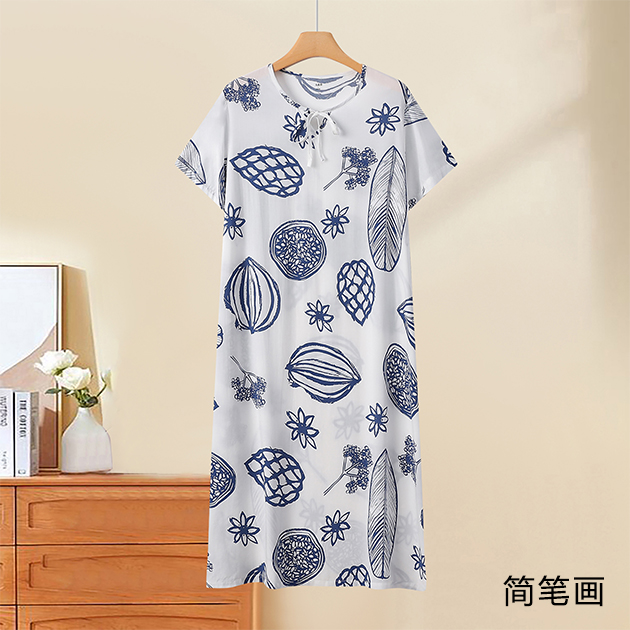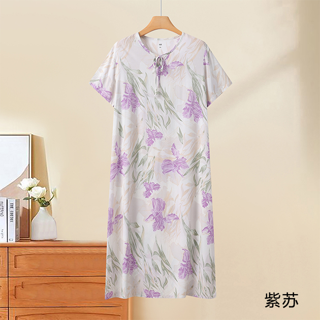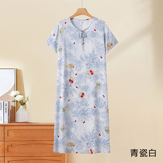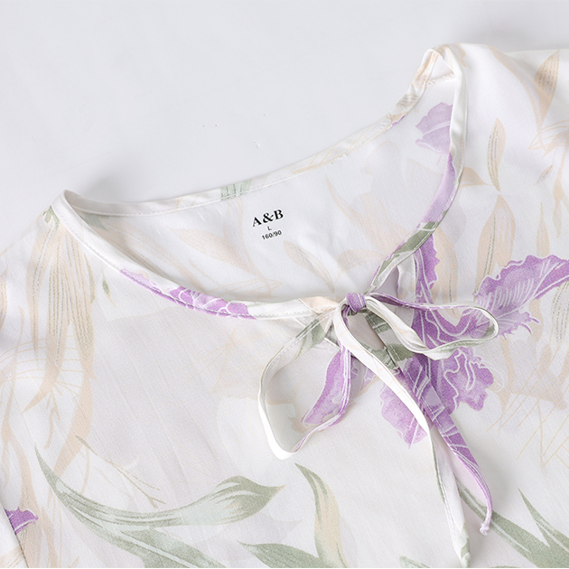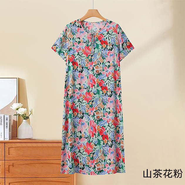 棉绸印花女圆领系带连衣裙(H922)