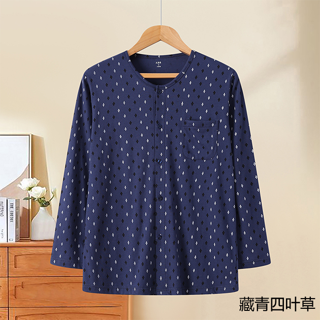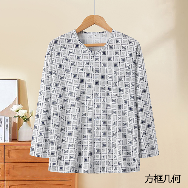 男紧密纺印花圆领贴袋长袖衫(H907)